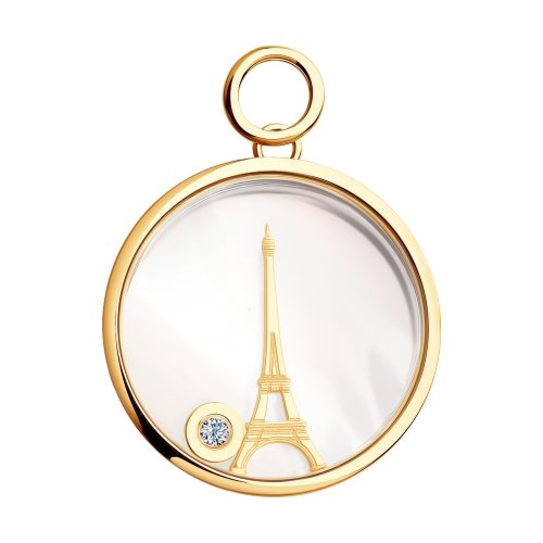 Оригинальная подвеска из красного золота 585 пробы с изображением Эйфелевой башни, декорирована драгоценным бриллиантом под сапфировым ювелирным стеклом. Необычный дизайн с подвижным, словно парящим в воздухе, бриллиантом на фоне нежного сияния перламутра, привлекает внимание, и станет романтичным воспоминанием о роскошном Париже или символом заветной мечты. Приобретайте украшение в подарок по выгодным ценам в магазинах Мир Золота.