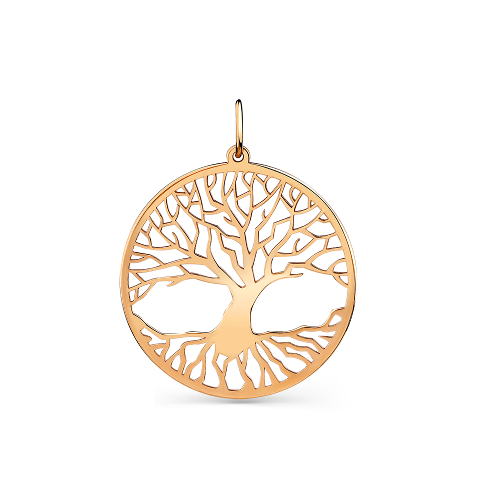 Подвеска из красного золота 585 пробы с изображением Древа жизни - популярного символа славянской культуры, станет надежным оберегом и талисманом владелицы. Стильное украшение ажурного дизайна без дополнительных вставок отлично подойдет для повседневной носки, и будет сочетаться с любым стилем одежды. Приобретайте украшение в подарок по выгодной цене в магазинах Мир Золота.