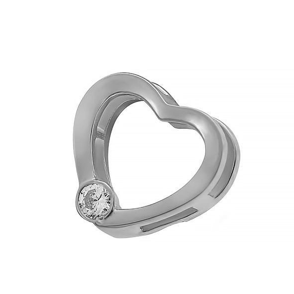 Подвеска-бегунок в форме сердца выполнена из родированного серебра 925 пробы с сияющим фианитом. Изумительная миниатюрная подвеска идеально дополнит повседневный образ, и сделает его более нежным и романтичным. Приобретайте символичное украшение в подарок для своих любимых по привлекательной цене в магазинах Мир Золота.