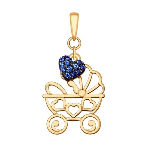 Чудесная подвеска из красного золота 585 пробы выполнена в виде золотой коляски, украшенной восхитительным сердечком из ярких синих фианитов. Украшение станет великолепным подарком в честь радостного события - рождения ребенка. Приобретайте прекрасную подвеску в подарок по выгодным ценам в магазинах Мир Золота.