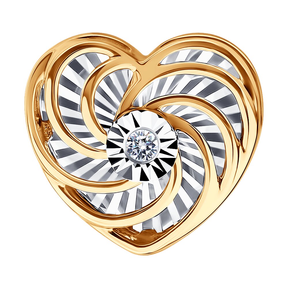Изысканная подвеска, выполненная из комбинированного золота, сочетает белое и красное золото, что придает изделию особую элегантность и утонченность. В центре подвески находится главный элемент – бриллиант. Этот драгоценный камень сверкает всеми своими гранями, отражая свет и привлекая внимание к своей безупречной огранке. Эта подвеска станет идеальным подарком для любимого человека, символизируя ваши глубокие чувства и привязанность.