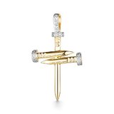 Оригинальная подвеска выполнена из благородного желтого золота и инкрустирована прозрачными фианитами, создающими яркий блеск. Она изготовлена в необычном стиле «гвоздь», ставшем популярным благодаря известному бренду. Минималистичная форма подвески добавляет ей привлекательности и делает её незаменимым аксессуаром для тех, кто любит экспериментировать с модой и создавать уникальные образы.