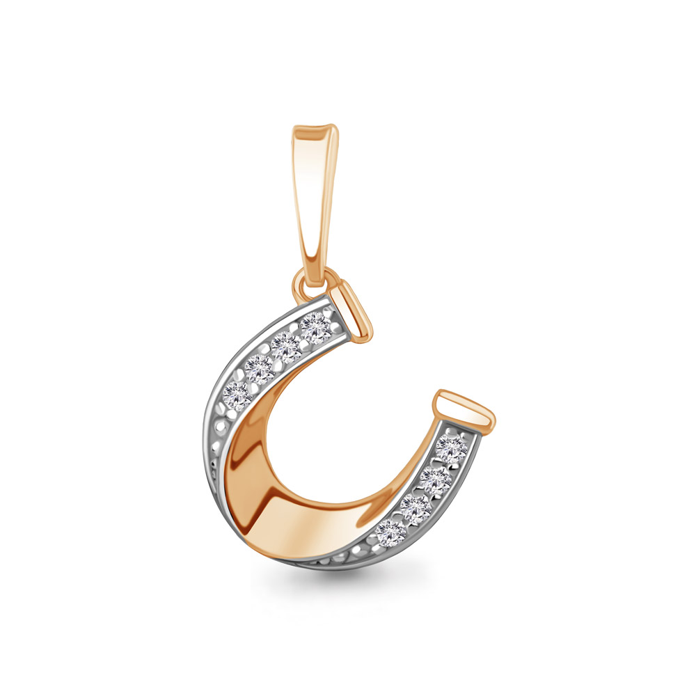 Стильная подвеска из красного золота с фианитами в форме подковы – прекрасное сочетание традиций и современности. Изящный дизайн изделия подчёркивает его эксклюзивность и уникальность. Блестящие фианиты гармонично дополняют тёплую гамму золота, притягивая взгляды окружающих. Этот амулет станет отличным талисманом для привлечения удачи и успеха.