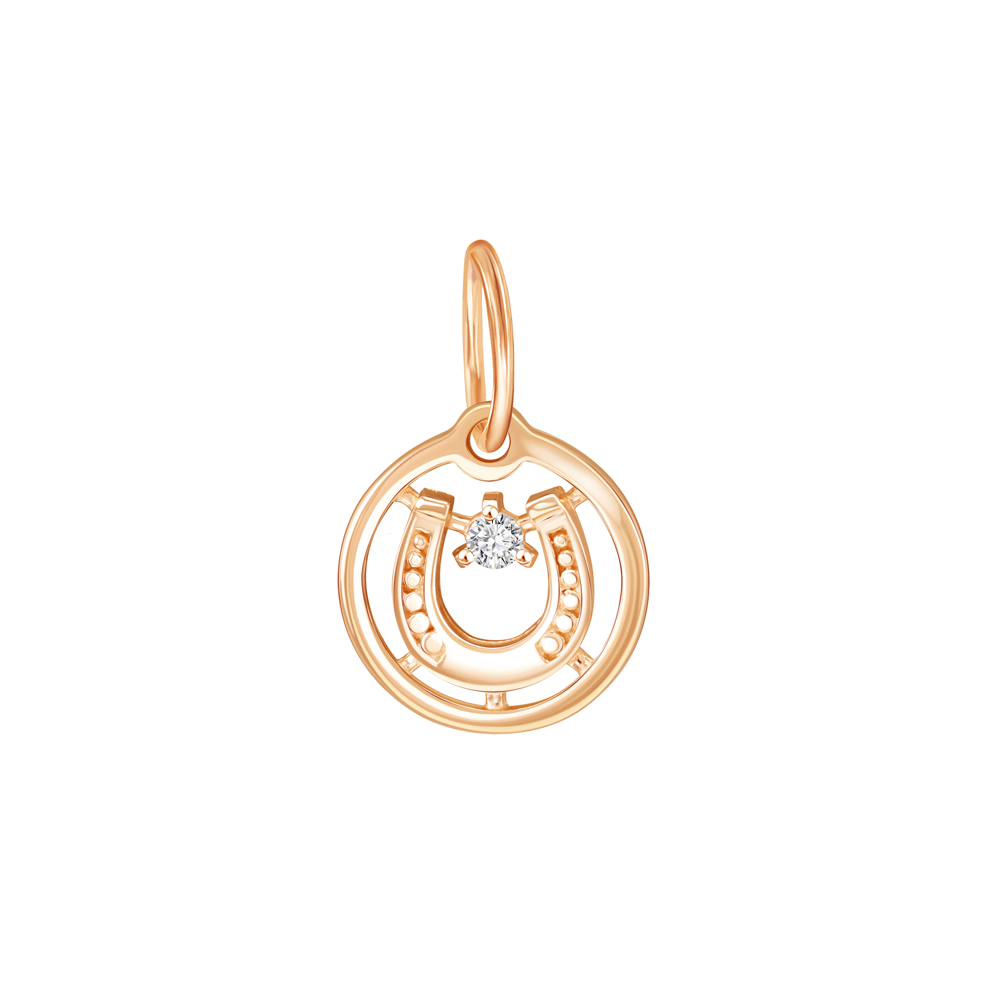 Круглая подвеска из красного золота с фианитом сочетает в себе элегантность и символику удачи. Благородный оттенок золота создаёт неповторимую атмосферу тепла и радости. Центральное место занимает сверкающий фианит, визуально напоминающий драгоценный камень, украшающий традиционную форму подковы. Это универсальный аксессуар, способный дополнить как классический, так и современный образ, став верным спутником на пути к успеху и счастью.