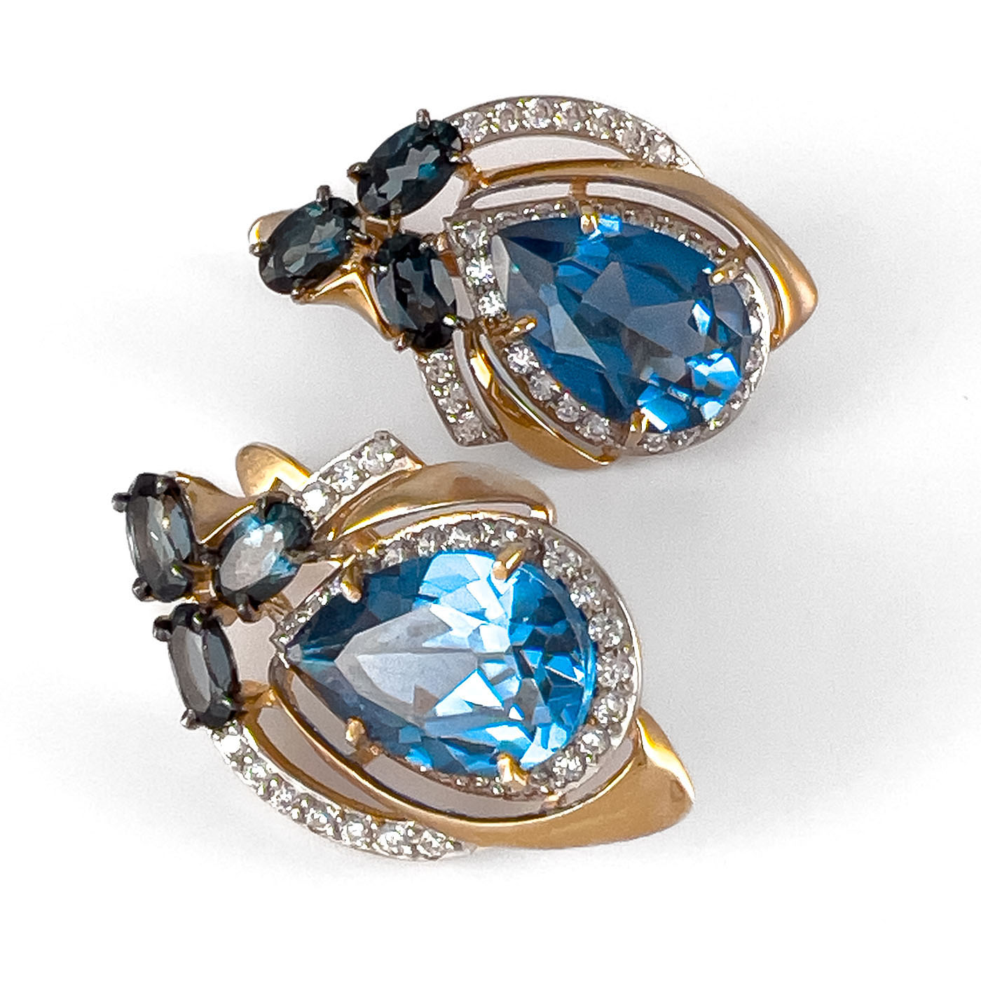 —Серьги из красного золота с топазом и фианитами
