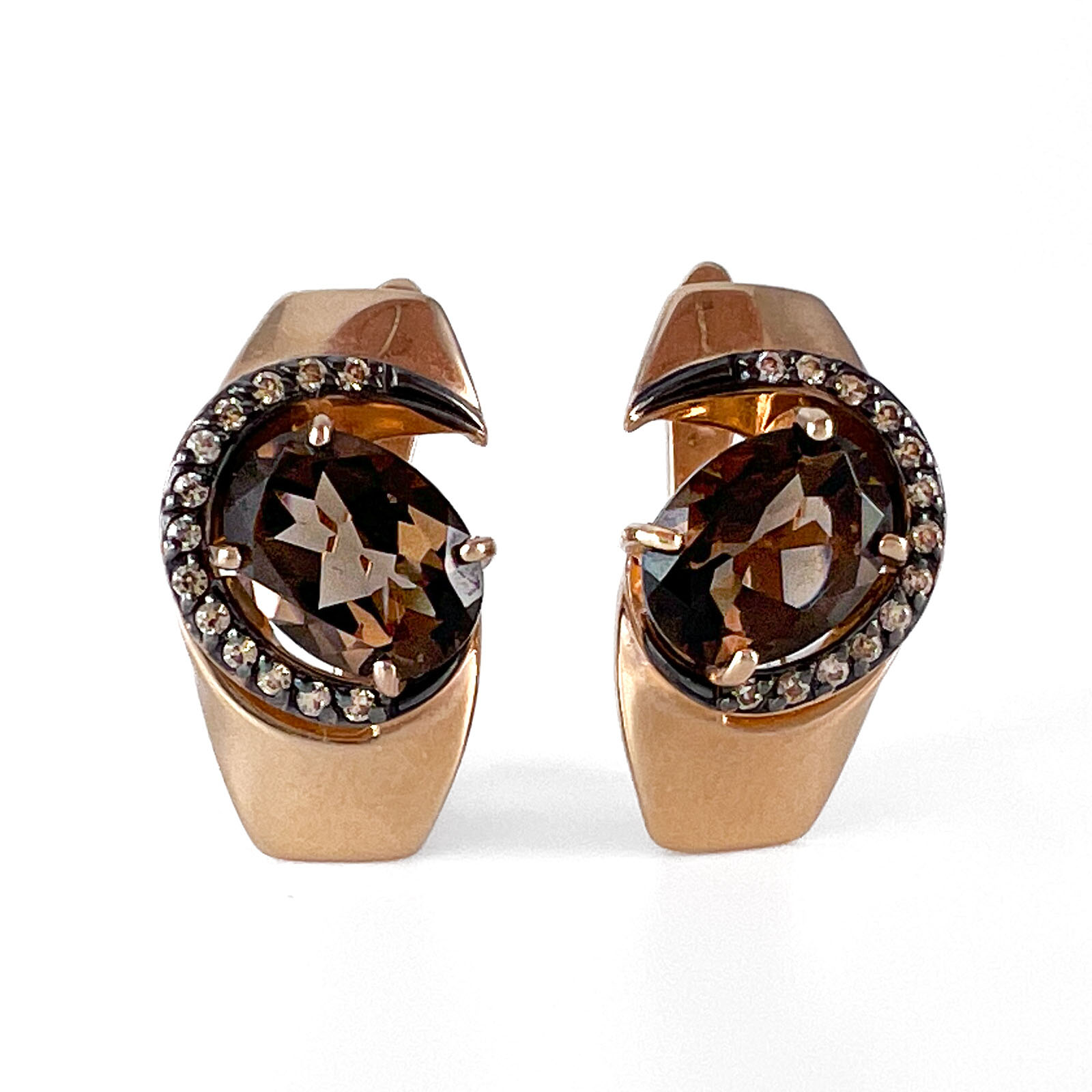 Оригинальные серьги из красного золота с золотисто-коричневым раухтопазом, декорированные чередой фианитов, подойдут для торжественного выхода. Наполненные сиянием полудрагоценных камней, эти серьги приобретают особый смысл и погружают в мир непревзойденной роскоши. Удобный и надежный английский замок прослужит долгие годы. Покупайте золотые украшения исключительного качества по привлекательной цене в магазинах Мир Золота.