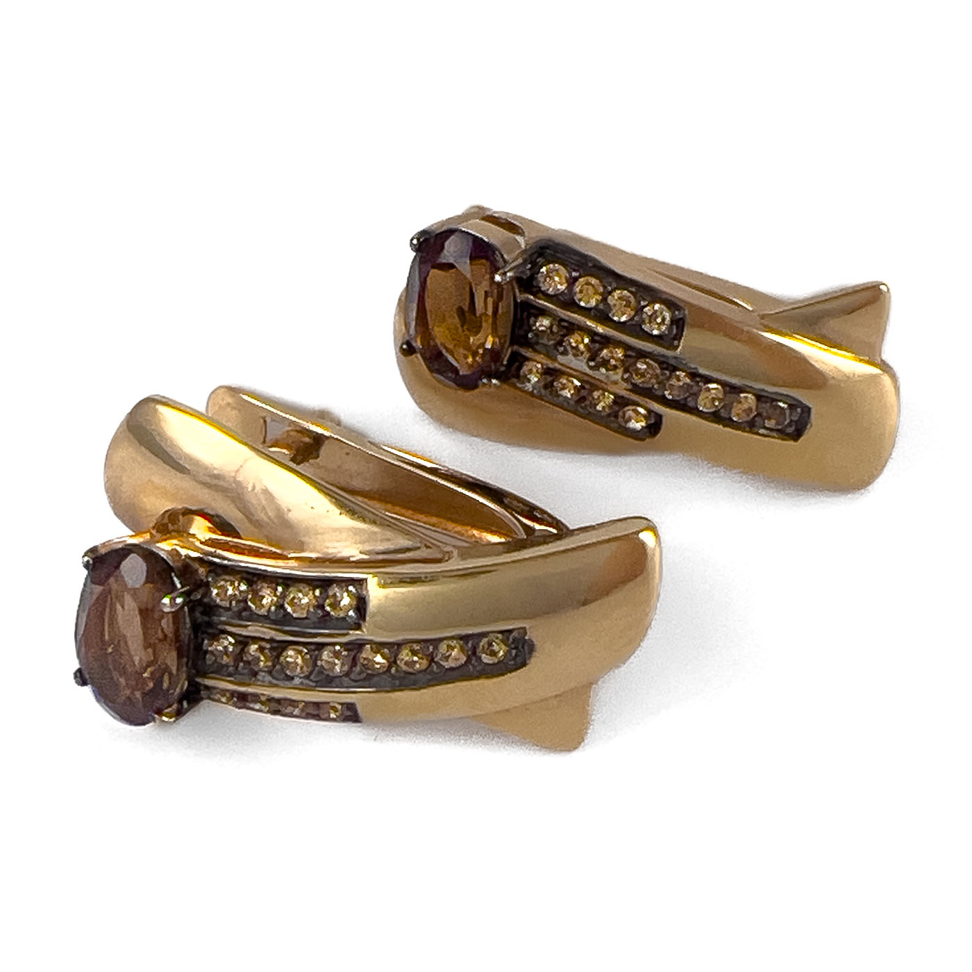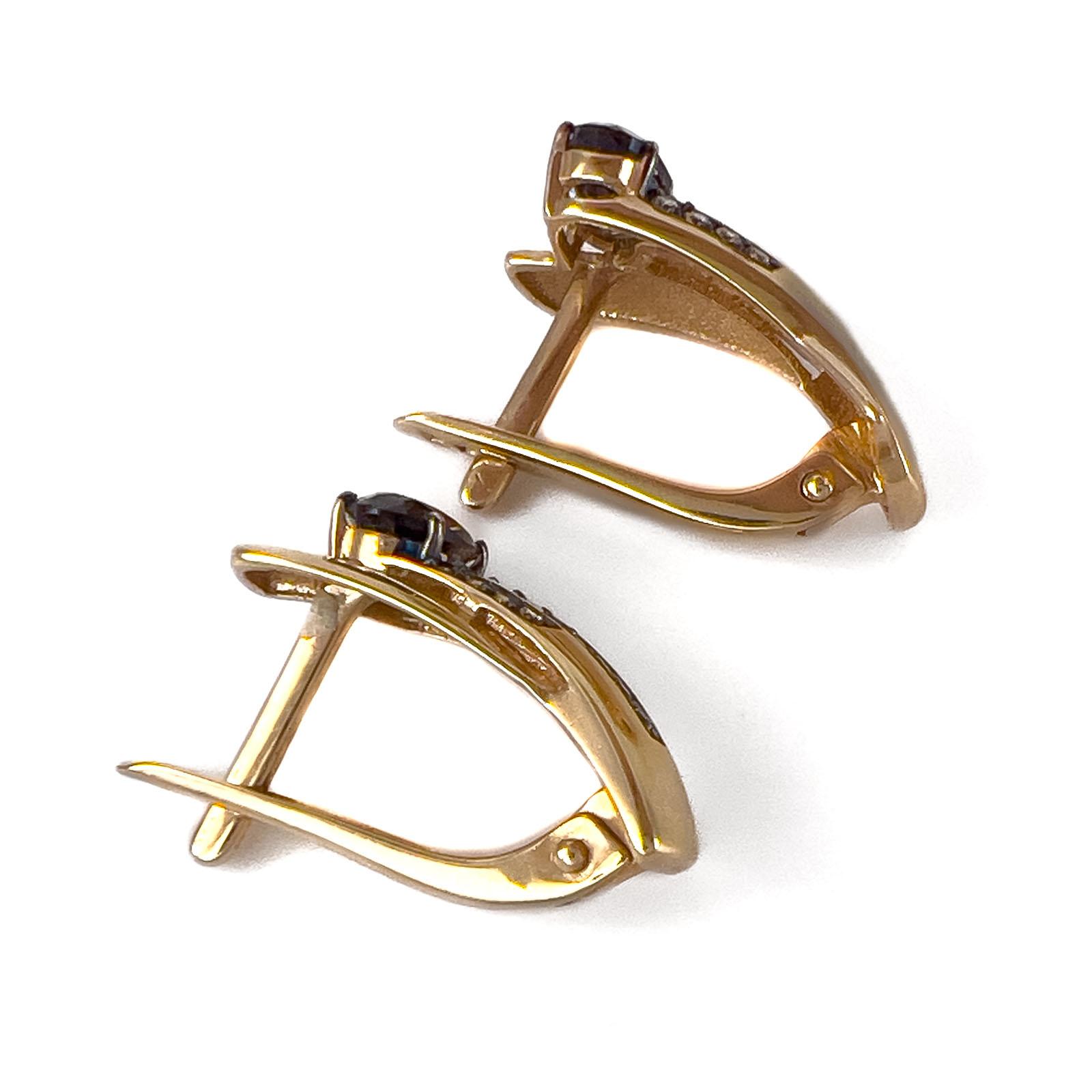 Декор в виде основного камня раухтопаза дополнен дорожками из цветных фианитов. Стильное украшение отлично дополнит любой образ и сделает его неотразимым. Приобретайте чудесные серьги по выгодной цене в магазинах Мир Золота.