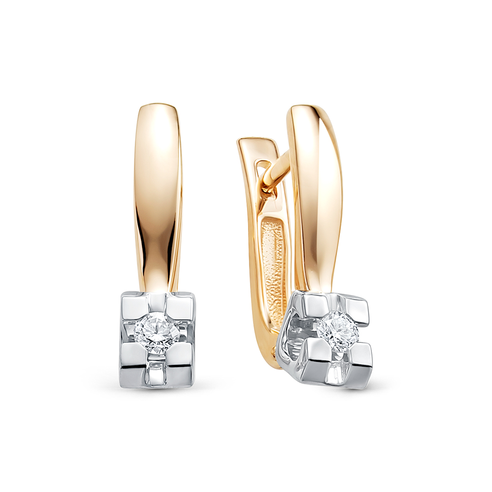 Серьги из красного золота 585 пробы в классическом стиле, украшены двумя бриллиантами. Эти серьги всегда выглядят элегантно и женственно. Сверкающие роскошные бриллианты выгодно подчеркнут индивидуальность. Английский замок отличается удобством и надёжностью. Купите серьги по выгодной цене в магазинах Мир Золота.