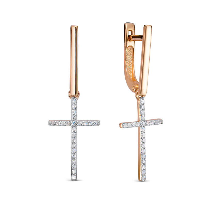 Серьги из красного золота с бриллиантами и декором в форме крестов