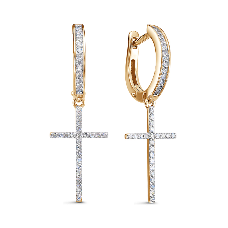Серьги из красного золота с бриллиантами и декором в форме крестов