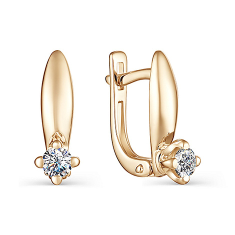 Чувственные серьги из красного золота 585 пробы, украшенные парой бриллиантов классической круглой огранки. Лаконичный дизайн, увенчанный манящим блеском бриллиантов, излучает красоту и изысканность, притягивая восхищенные взгляды. Английский вид застежки. Украшение представлено ювелирным брендом АЛЬКОР.