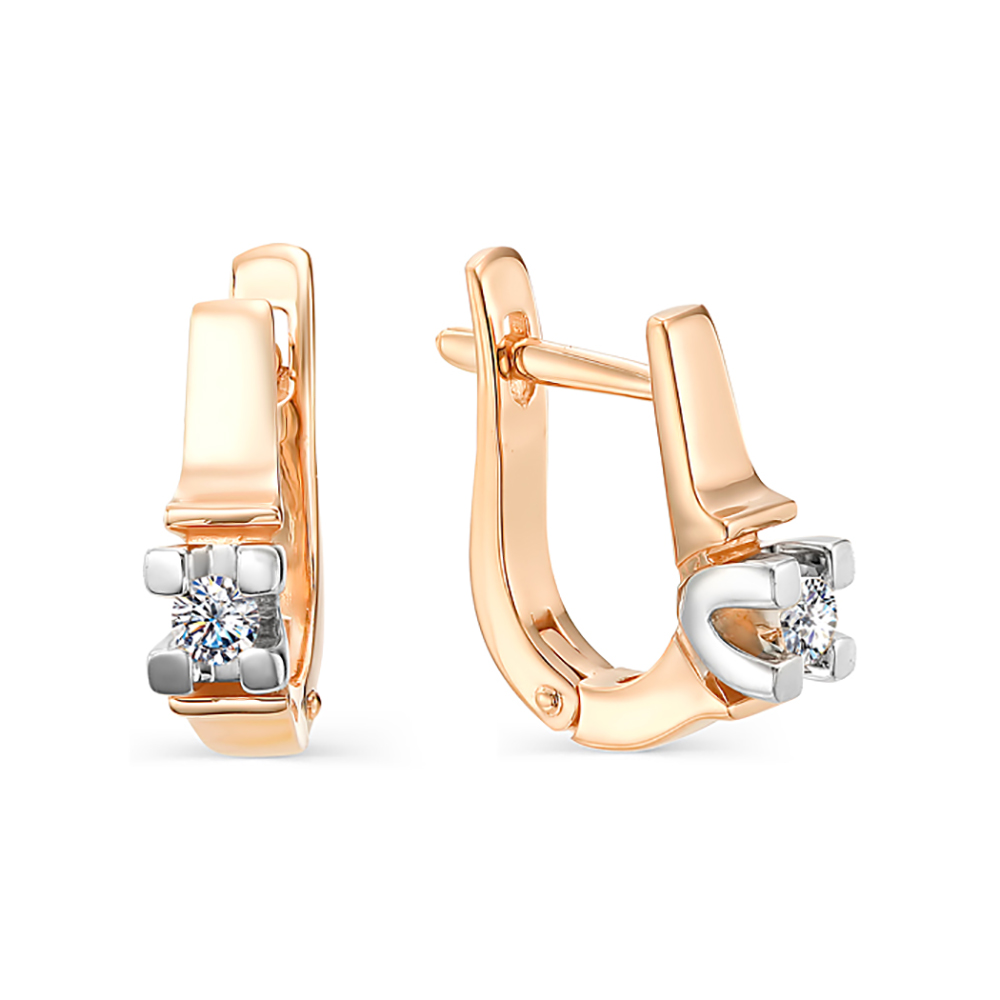 Стильные серьги из красного золота, декорированные двумя бриллиантами – притягательный акцент для современного образа. Геометрический дизайн и закрепка бриллиантов в белом золоте придает драгоценным камням объем и подчеркивает их природную красоту. Тип замка - английский, самый надежный и удобный. Украшение представлено ювелирным брендом Brilliant Style. Покупайте золотые украшения исключительного качества по привлекательной цене в магазинах Мир Золота.