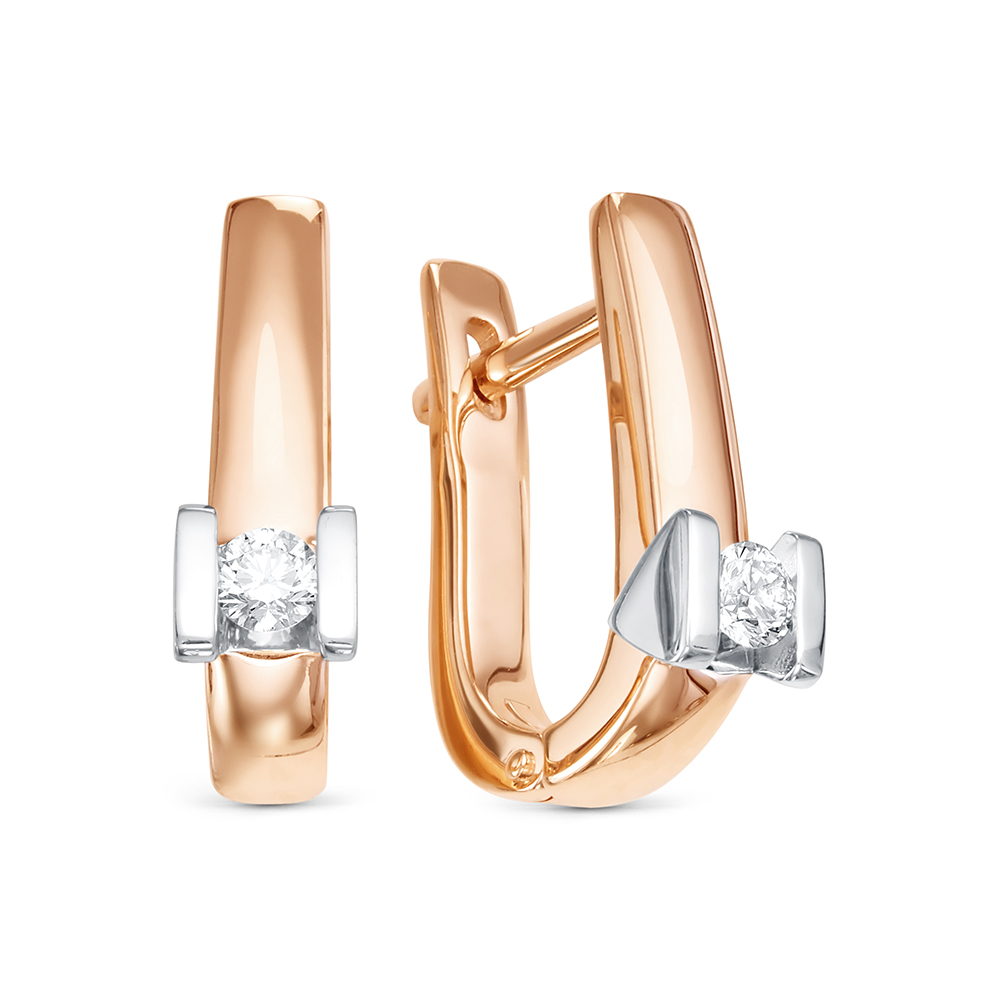Лаконичные минималистичные серьги из красного золота 585 пробы с двумя бриллиантами с годами не потеряют своей актуальности и впишутся в абсолютно любой образ. Линии белого золота дополняют изящность бриллиантов классической круглой огранки и придают серьгам особый шарм. Серьги имеют удобный английский замок.