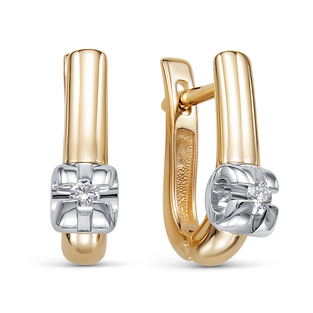 Лаконичные серьги из красного золота 585 пробы украшены акцентной вставкой белого золота и двумя бриллиантами. Классическое обрамление драгоценных камней лишь подчеркивает их исключительную круглую огранку и блеск. С помощью этих изысканных серег можно создать идеальный образ. Купите серьги по выгодной цене для себя или в подарок в магазинах Мир Золота.