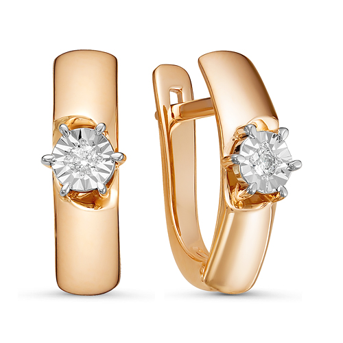 Нежные классические серьги из красного золота 585 пробы с притягательными бриллиантами покорят своим неповторимым блеском. Крапановый метод фиксации акцентирует драгоценный камень, а алмазная грань белого золота придает объем и подчеркивает его природную красоту. Это идеальное украшение, которое превосходно сочетается с большинством аксессуаров и дополнит безупречный образ.