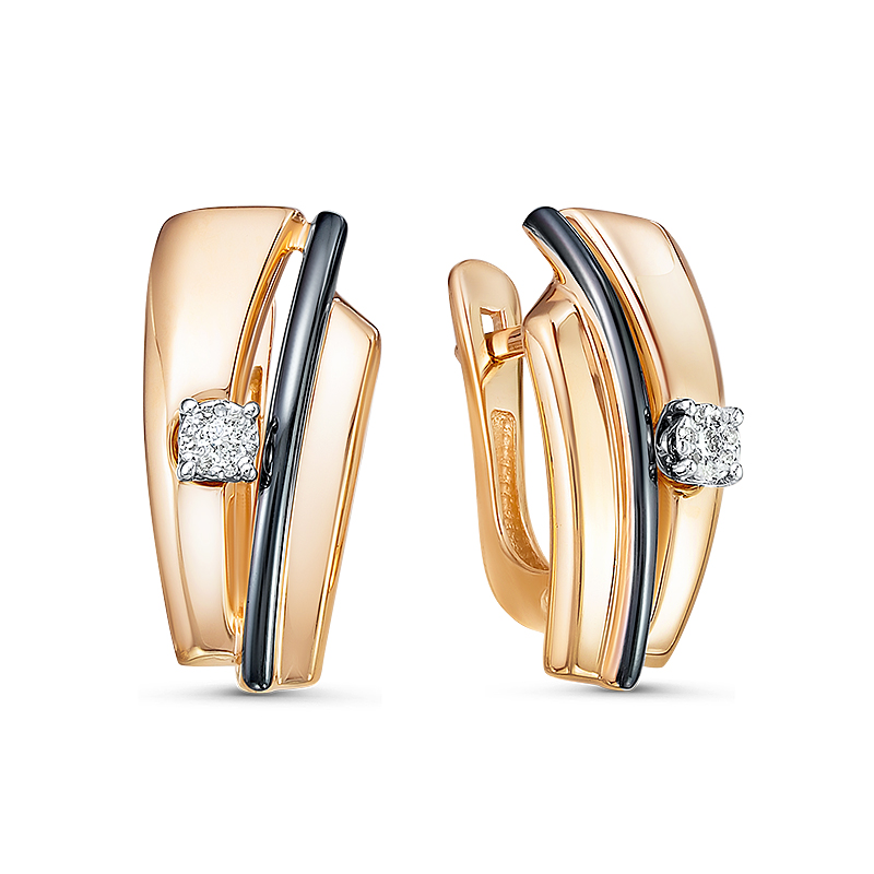 Оригинальные золотые серьги с россыпью бриллиантов порадуют тех, кто привык быть в центре внимания. Визуальный объем украшению придают мягкие линии золота и черное родирование. Бриллианты всегда уместны, а английский тип застежки признан одним из самых надежных и комфортных. Ювелирные украшения с бриллиантами бренда DELTA - доступная роскошь!