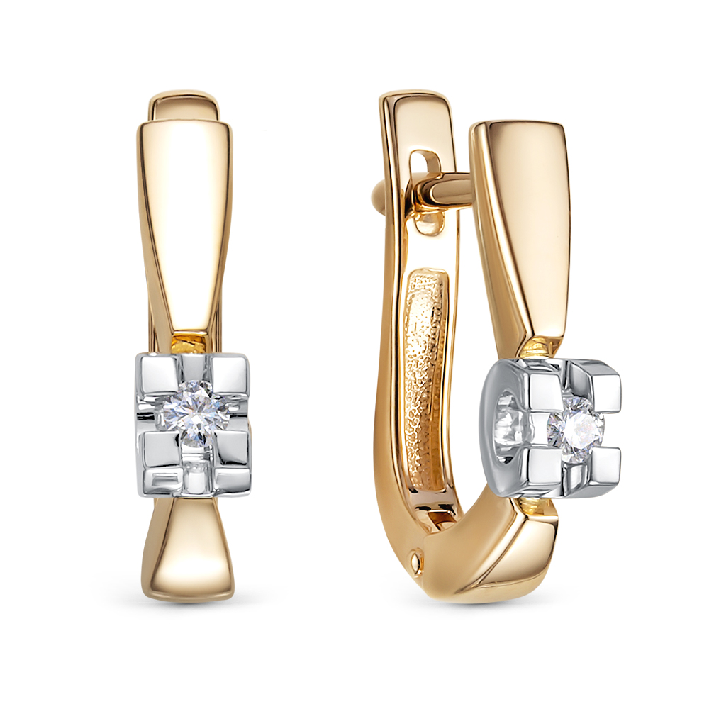 Нежные серьги ювелирного бренда ЛЕТО выполнены из красного золота 585 пробы, украшены двумя сияющими бриллиантами классической круглой огранки. Закрепка бриллиантов в белом золоте придает камням объем и подчеркивает их природную красоту и игру света. Тип замка – английский, самый надежный и удобный. Купите серьги по доступной цене в магазинах Мир Золота.
