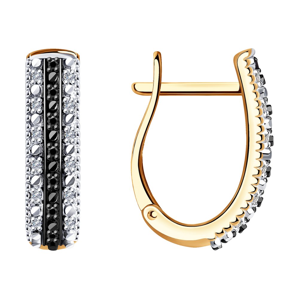 Серьги SOKOLOV из красного золота, украшенные притягательными прозрачными и черными бриллиантами, придадут еще больше загадочности неповторимому образу. Строгий дизайн, увенчанный манящим блеском бриллиантов, излучает красоту и изысканность, притягивая восхищенные взгляды. Удобный и надежный английский вид застежки. Купите эффектные серьги по лучшей цене в магазинах Мир Золота.