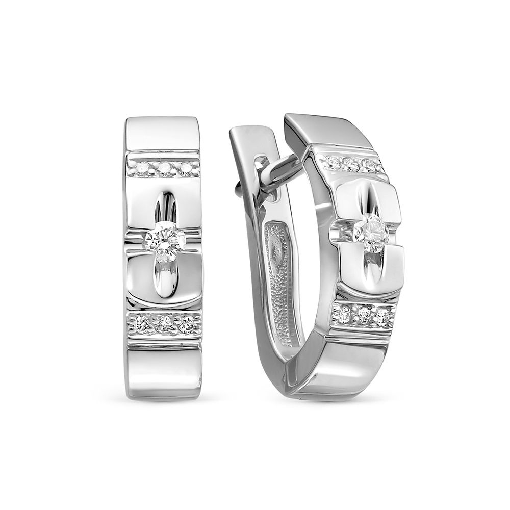 Оригинальные серьги из белого золота, инкрустированные бриллиантовой композицией, подчеркнут стиль и характер. Завораживающий блеск 14 бриллиантов, окутанный магическим шлейфом белого золота, превращает эти серьги в изысканное украшение, достойное внимания. Такие серьги станут прекрасным роскошным дополнением для праздничного выхода. Покупайте золотые украшения исключительного качества по привлекательной цене в магазинах Мир Золота.