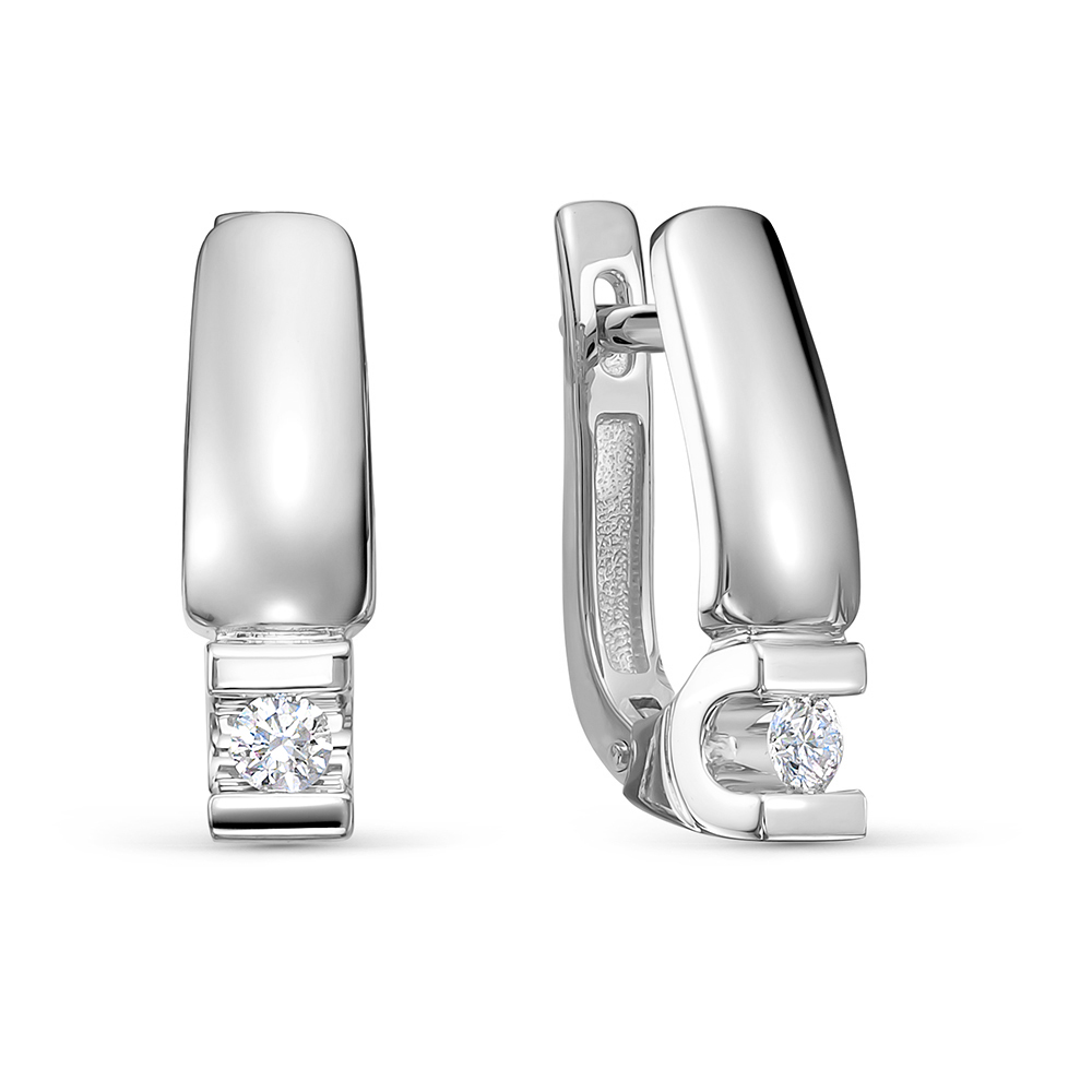 Стильные серьги из белого золота 585 пробы, декорированные двумя бриллиантами, помогут создать роскошный образ достойный любого повода. Геометричные линии белого золота дополняют изящность бриллиантов классической круглой огранки и придают серьгам особый утонченный вид. Купите украшения по выгодной цене в магазинах Мир Золота.