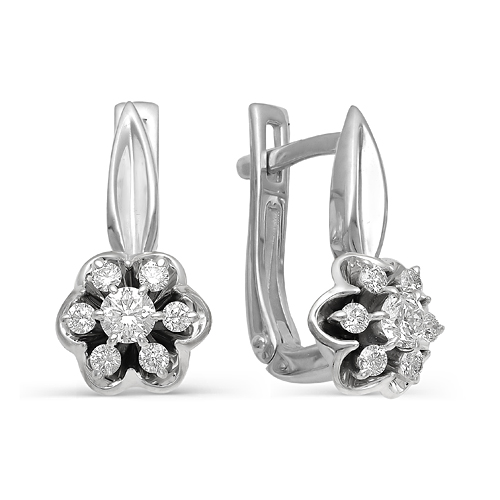 Элегантные серьги из белого золота 585 пробы украшены 14 бриллиантами, которые собраны в центре распустившегося цветка. Безупречные линии золота придают украшению одновременно воздушный объем и изящность. Интересный дизайн станет ярким акцентом стильного образа. Удобный и надежный элегантный английский замок.