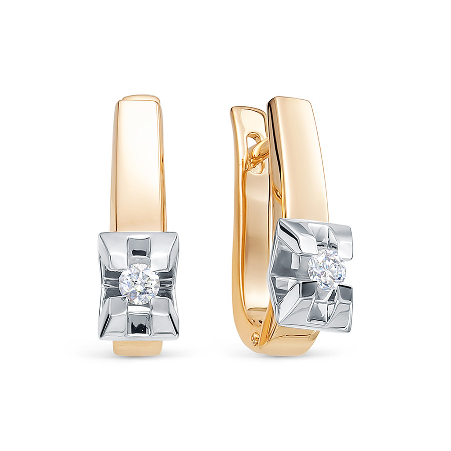 Элегантные женские серьги из красного золота 585 пробы, декорированные двумя бриллиантами, помогут создать роскошный образ достойный любого повода. Белое золото выгодно дополняет изящность бриллиантов классической круглой огранки и придает серьгам особый утонченный вид. Серьги имеют удобный английский замок.