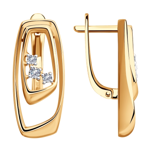 Оригинальные серьги из красного золота с роскошными геометрическими формами и акцентными бриллиантами – идеальное украшение для вечернего образа. Футуристичный стиль украшения придает драгоценным камням динамичность и подчеркивает их природную роскошь. Серьги представлены ювелирным брендом SOKOLOV. Покупайте золотые украшения исключительного качества по привлекательной цене в магазинах Мир Золота.