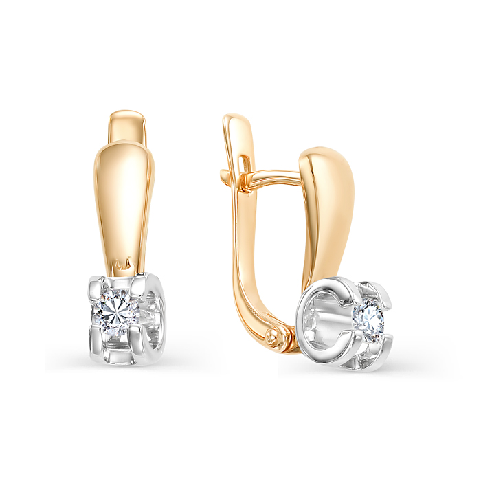Элегантные серьги из красного золота 585 пробы, декорированные двумя бриллиантами, помогут создать роскошный образ достойный любого повода. Белое золото выгодно дополняет изящность бриллиантов классической круглой огранки и придает серьгам особый утонченный вид. Серьги имеют удобный английский замок.