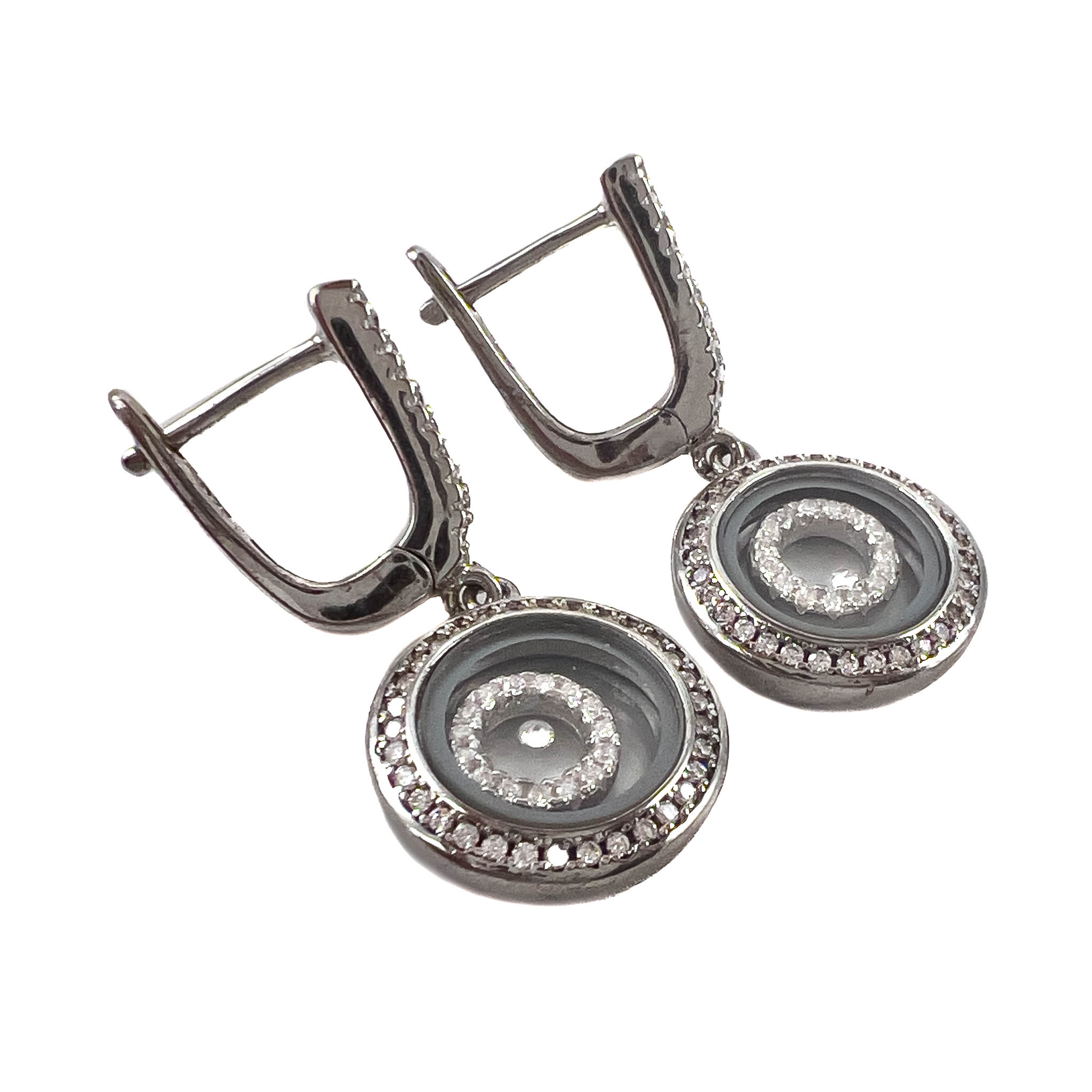 Оригинальные серебряные серьги круглой формы с подвижными цирконами под стеклом влюбляют в себя с первой минуты. Благородное серебро идеально подчеркивает красоту прозрачных камней и выгодно выделяет их. Благодаря лаконичному, но в то же время элегантному дизайну, это украшение не потеряет с годами своей актуальности и впишется в абсолютно любой женский образ. Серьги представлены ювелирным брендом Verona.