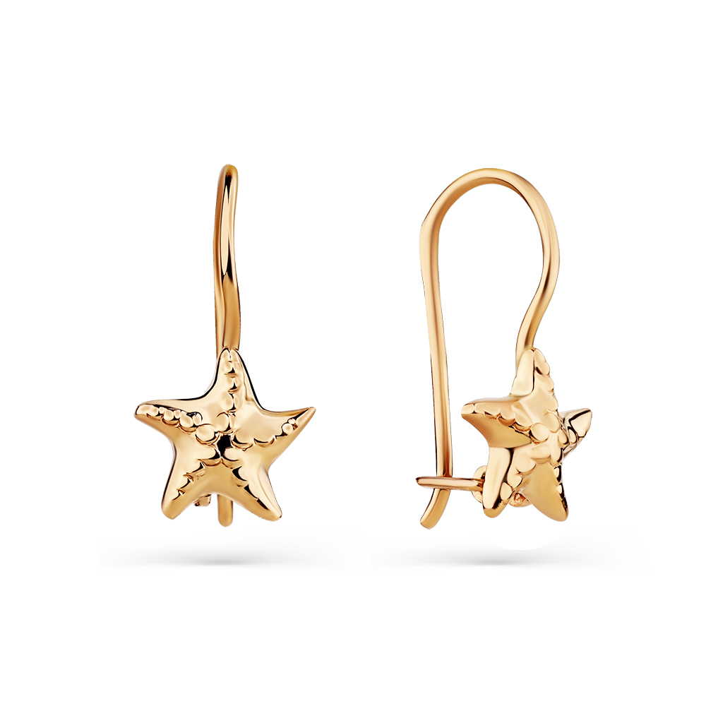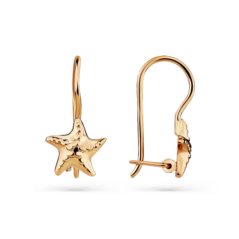 Нежные детские серьги интересного дизайна в виде морской звезды выполнены из красного золота 585 пробы. Милые сережки с комфортным замком подойдут для девочек разного возраста и отлично украсят любой повседневный наряд. Приобретайте симпатичные сережки в подарок по выгодным ценам в магазинах Мир Золота.