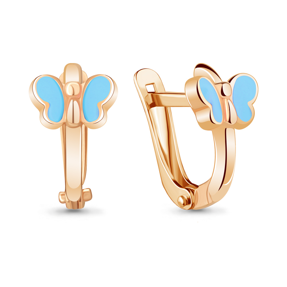 —Серьги «Бабочки» из красного золота 585 пробы с эмалью