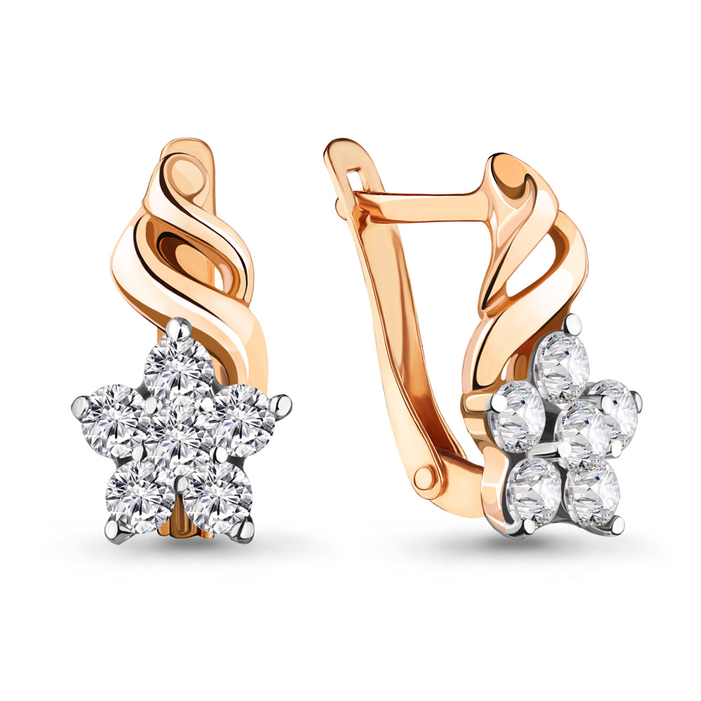 Привлекательные детские серьги из красного золота 585 пробы с фианитами. Серьги прекрасного дизайна эффектно декорированы композицией в виде цветочков из прозрачных фианитов. Блистательные сережки украсят образы юных модниц, и станут желанным подарком. Приобретайте сережки для детей по выгодным ценам в магазинах Мир Золота.