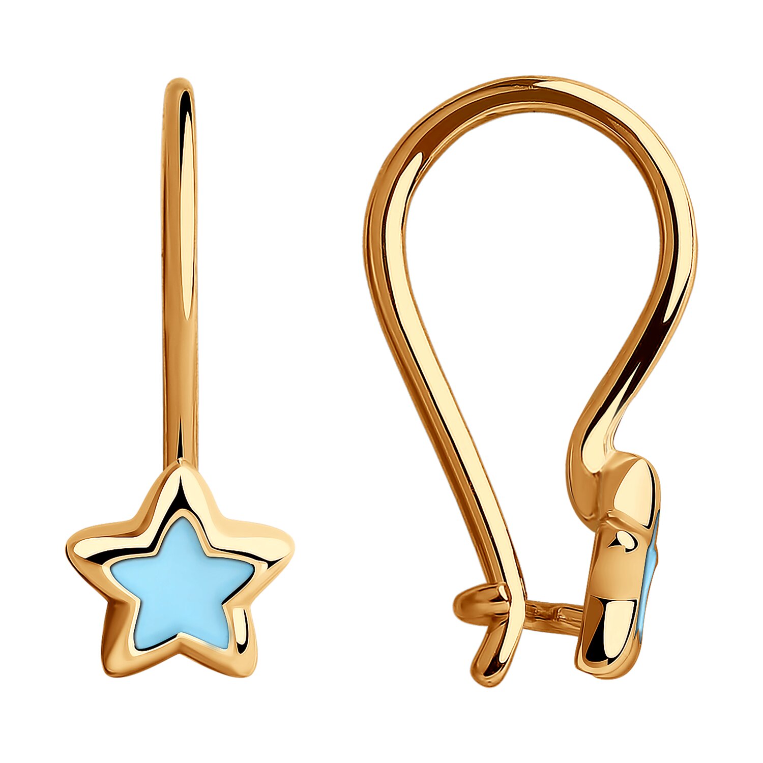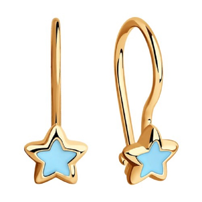 Нежные детские сережки в форме звездочек выполнены из красного золота 585 пробы с цветной эмалью. Миниатюрные сережки с яркими голубыми звездочками станут изюминкой любого образа маленькой принцессы. Приобретайте красивое и комфортное украшение для девочек в подарок по выгодным ценам в магазинах Мир Золота.