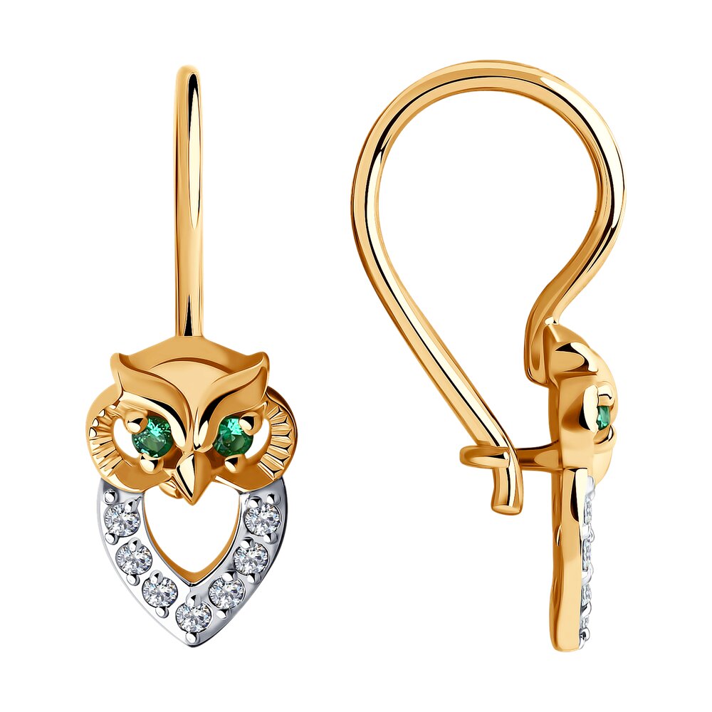 Серьги «Сова» из красного золота 585 пробы с фианитами