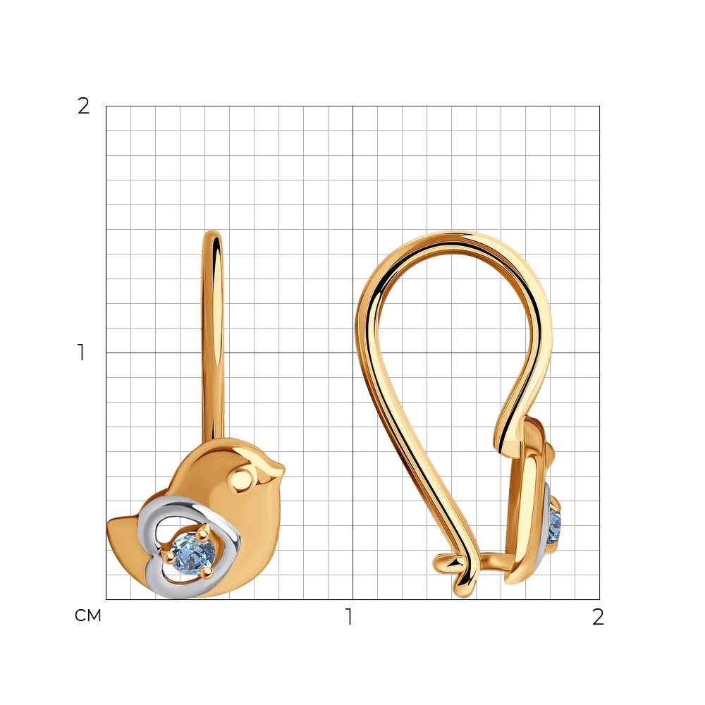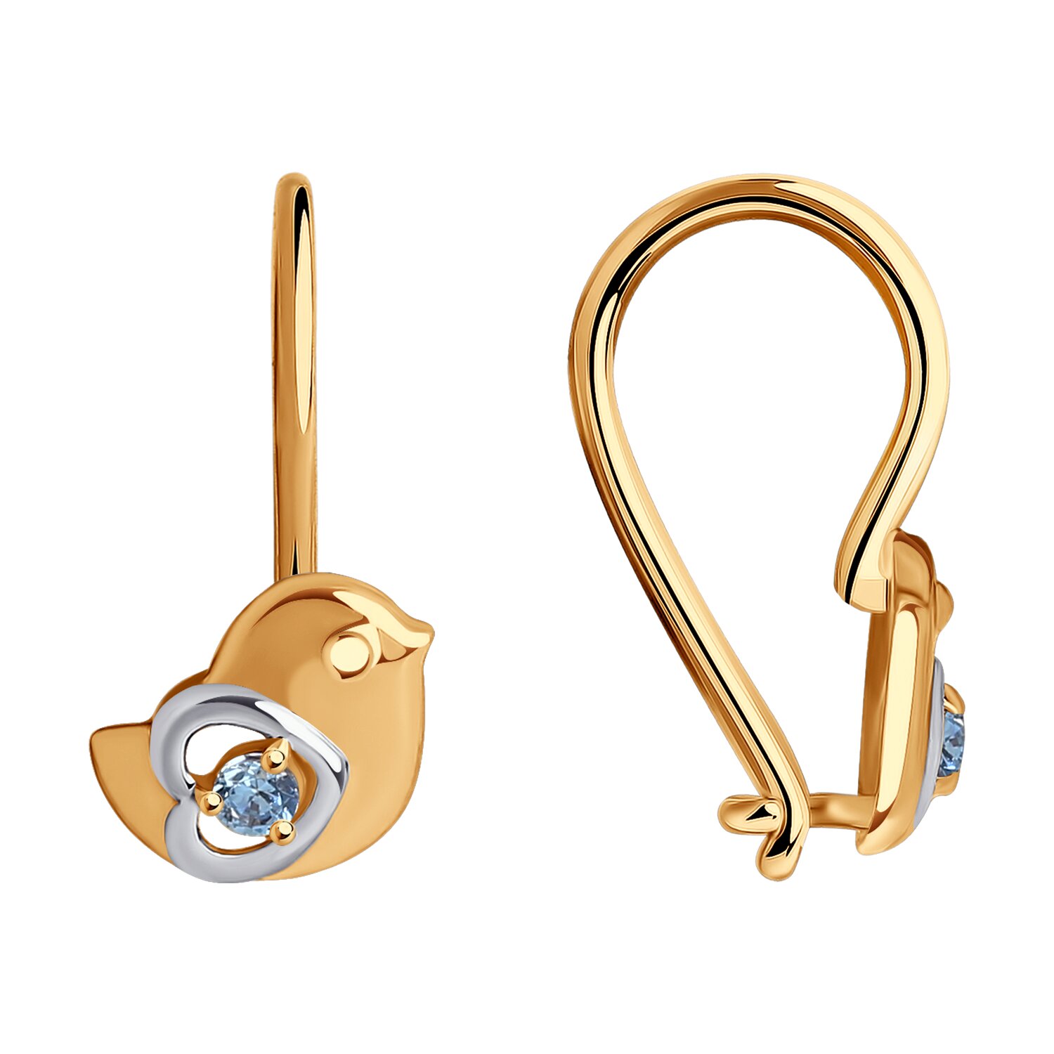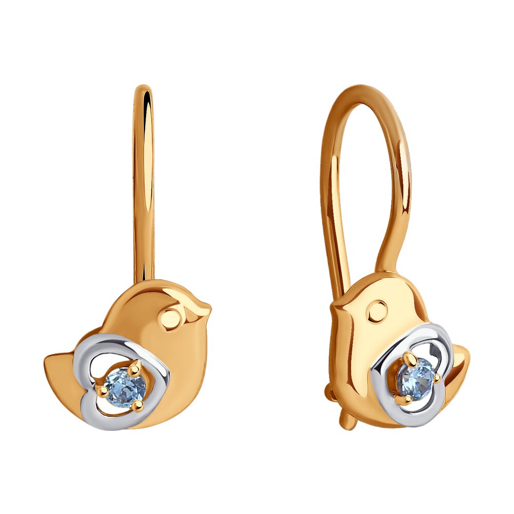 Миниатюрные детские сережки в виде птичек с фианитами выполнены из красного и белого золота 585 пробы. Нежные голубые фианиты в обрамлении сердечек из белого золота дополняют чудесный дизайн украшения. Маленькие птички подарят радость и восторг, и отлично дополнят детские наряды. Приобретайте милые сережки по выгодным ценам в магазинах Мир Золота.