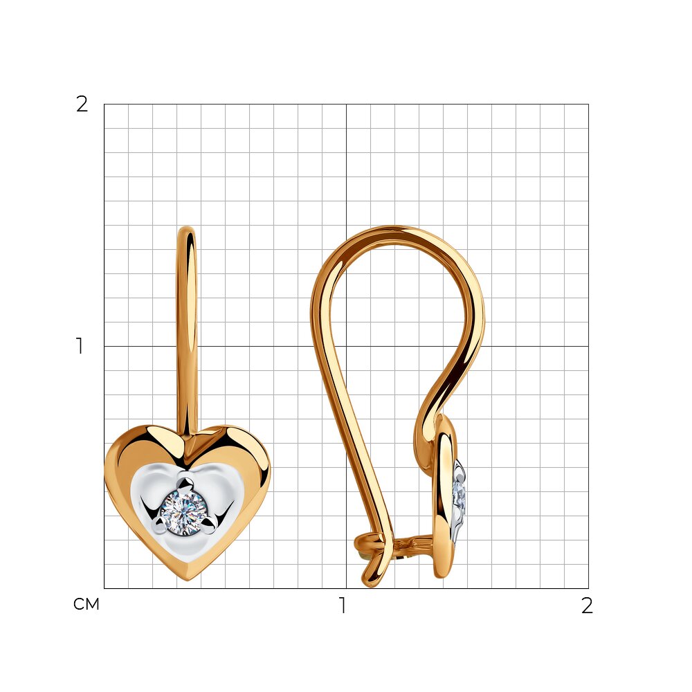 —Серьги «Сердечки» из красного золота 585 пробы с фианитами