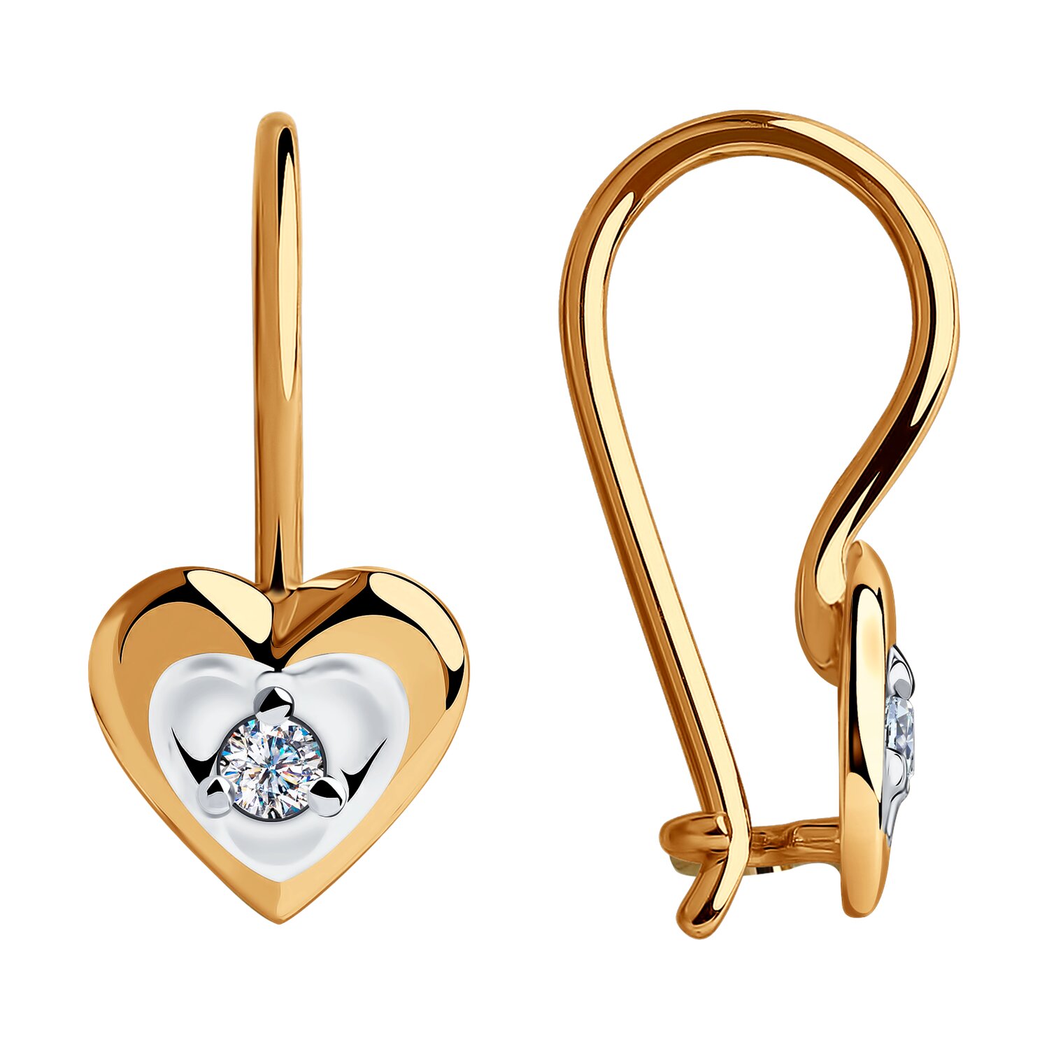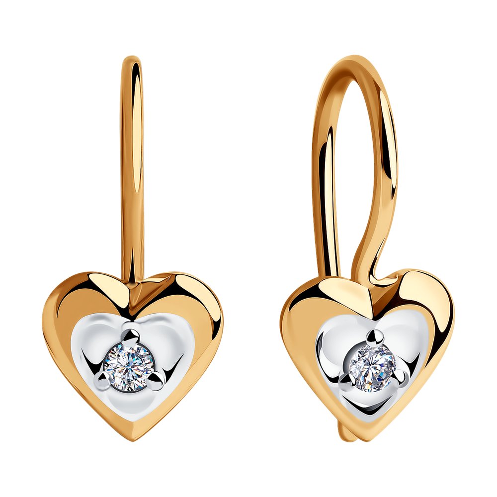 Серьги «Сердечки» из красного золота 585 пробы с фианитами