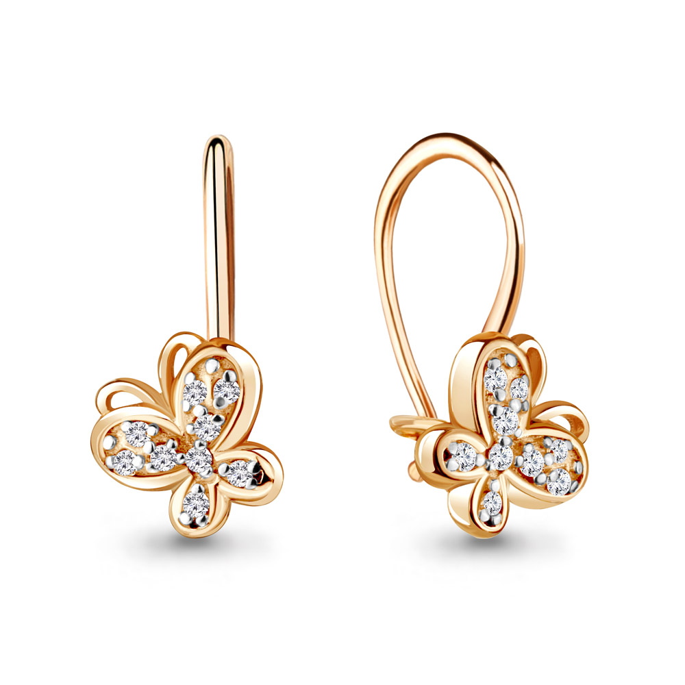 —Серьги «Бабочки« из красного золота 585 пробы с фианитами