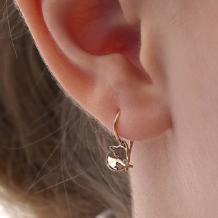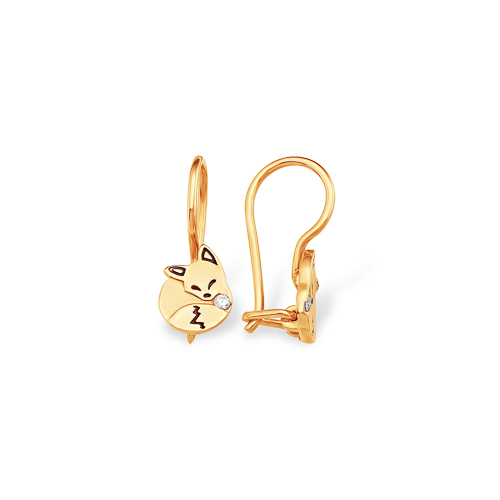 —Серьги «Лисички» из красного золота 585 пробы с фианитами