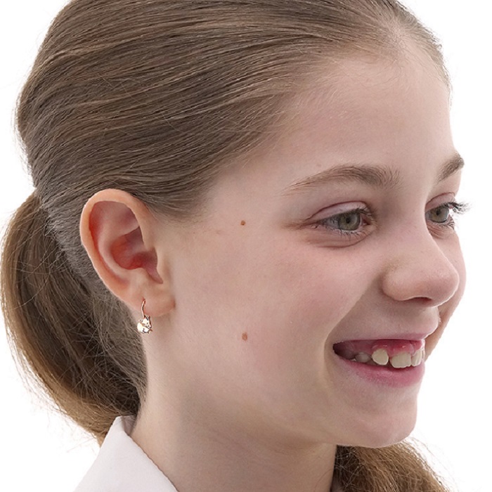 Серьги «Лисички» из красного золота 585 пробы с фианитами