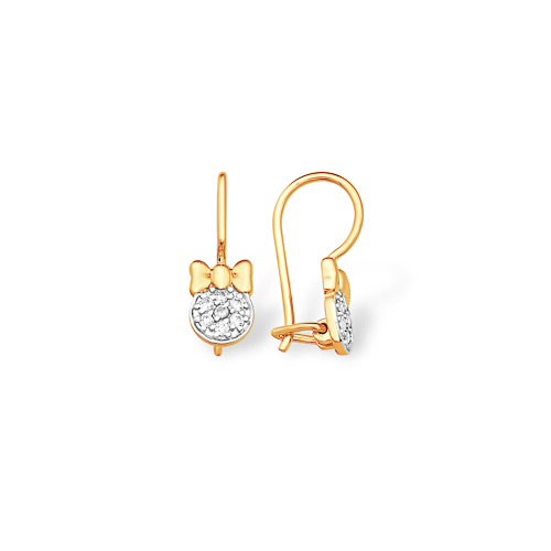Изумительные детские серьги, украшенные золотыми бантиками и прозрачными фианитами., выполнены из красного золота 585 пробы. Изящное украшение с искристыми камнями сделает образ девочки более очаровательным. Аккуратные сережки будут лучшим ювелирным подарком на любой праздник, и отлично подойдут в качестве первого украшения девочки. Приобретайте серьги по выгодным ценам в магазинах Мир Золота.