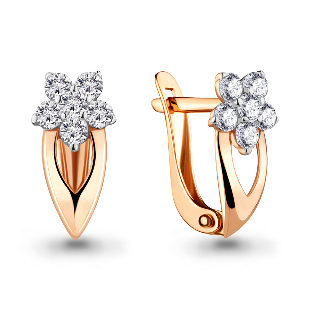 —Серьги из красного золота 585 пробы с фианитами