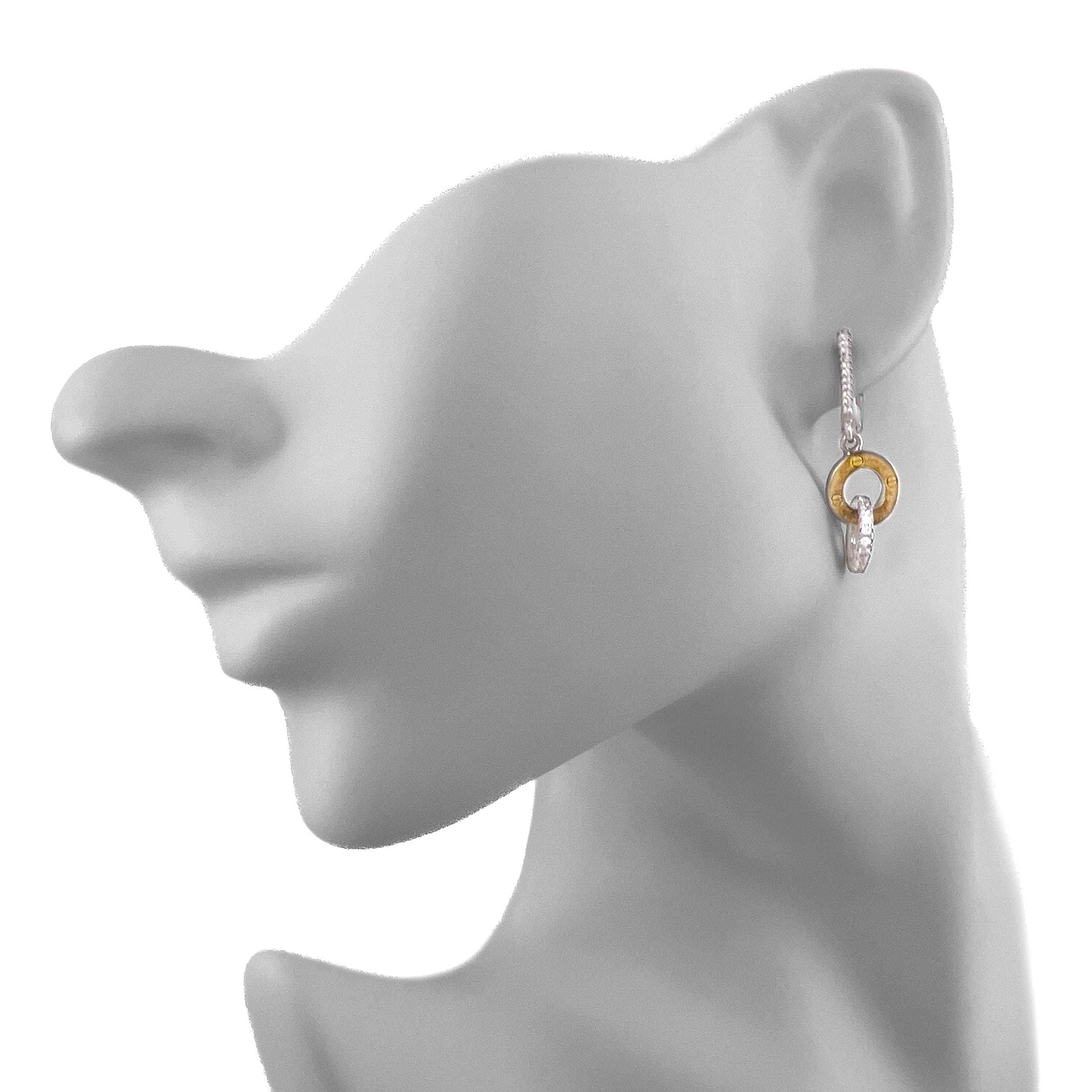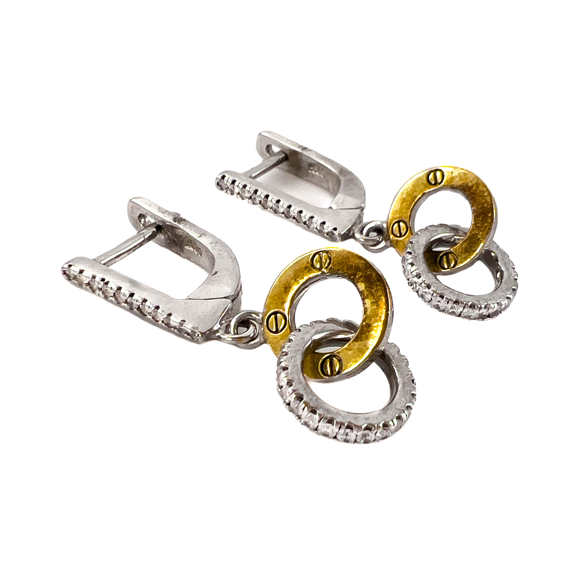 Сияющие модные серебряные серьги помогут изысканно подчеркнуть эффектный образ. Два кольца, объединенных вместе - только так создается бесконечность, которая для каждого имеет свой особый смысл. Яркий блеск серебристо-белого металла гармонично подчеркивает позолоченные элементы. Продуманный стиль серег дополнит деловой, повседневный и вечерний образы. Тип замка - английский, самый надежный и удобный.