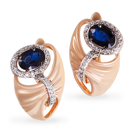 Оригинальные в исполнении серьги из красного золота, украшенные бриллиантами и синими сапфирами, не оставят никого равнодушным. Безупречные мягкие и объемные линии золота кажутся роскошно воздушными и следуют трендовым преображениям классических украшений с учетом современной моды. Удобный и надежный элегантный английский замок прослужит долго многие годы. Восхитительные золотые украшения высокого качества по привлекательной цене в магазинах Мир Золота.