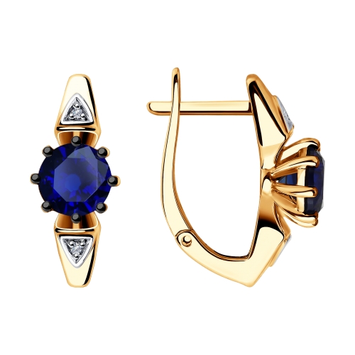 Классические серьги из красного золота 585 пробы с бриллиантами и корундами. Серьги дополняют восхитительные сапфировые корунды круглой огранки и небольшие бриллианты на фоне вставок из белого золота. Прекрасные серьги с эффектным сочетанием корундов и мерцающих бриллиантов выгодно подчеркнут привлекательный женский образ. Приобретайте серьги по выгодным ценам в магазинах Мир Золота.