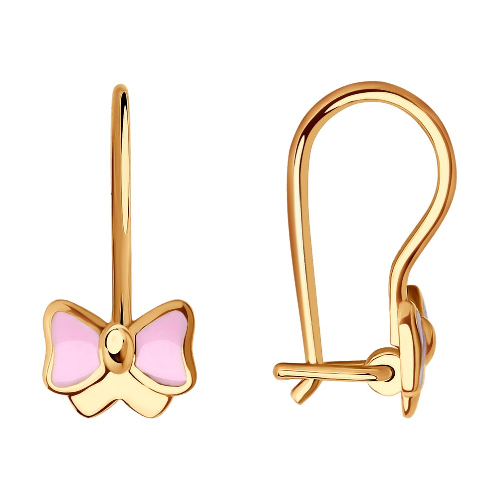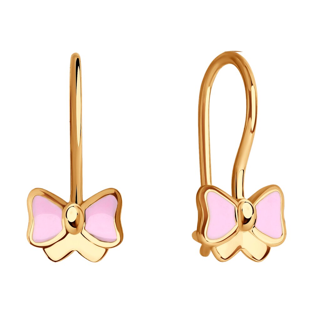 Серьги «Бантики» из красного золота 585 пробы с эмалью