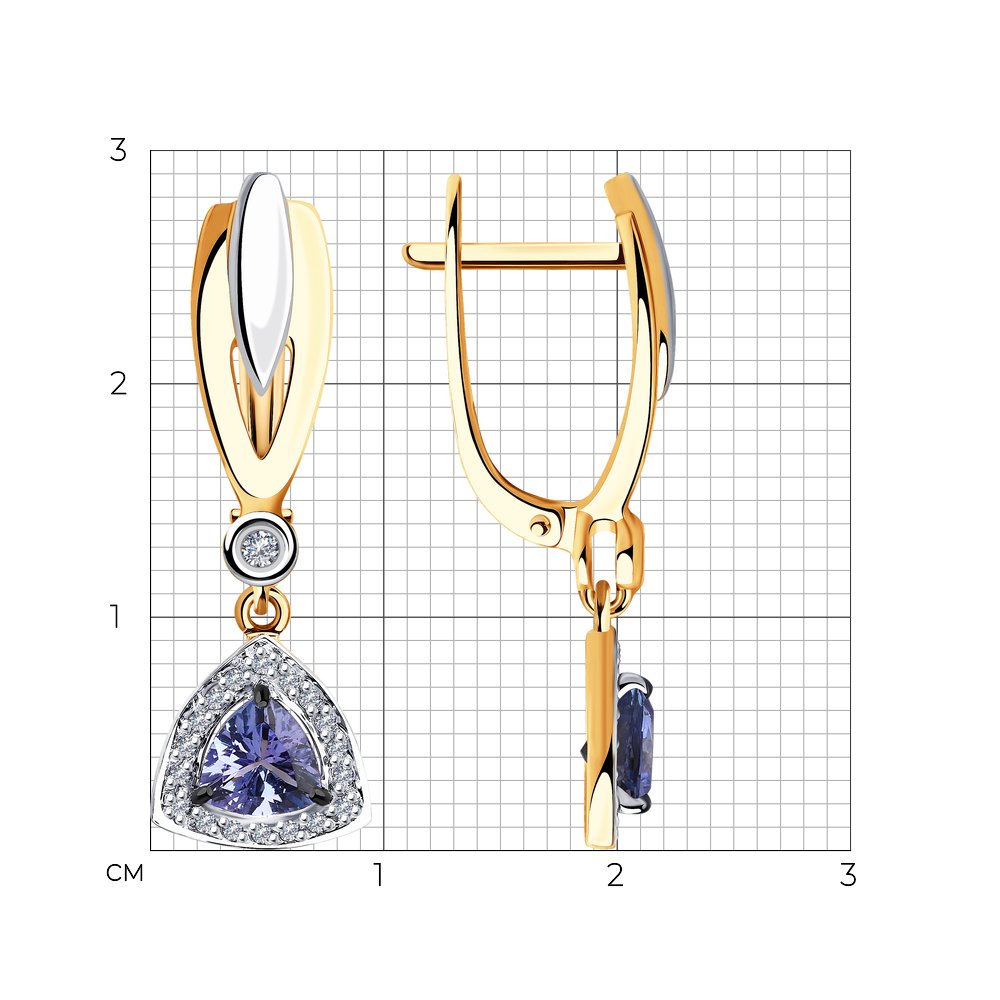 Серьги из золота с бриллиантами и танзанитами
