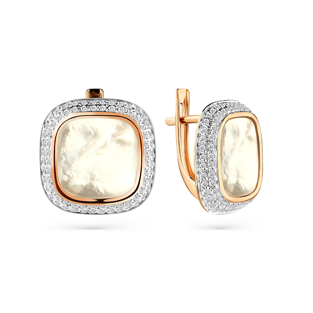 Великолепные серьги с перламутром и фианитами выполнены из красного золота 585 пробы. Классические серьги, украшенные вставками с нежным белым перламутром в обрамлении ярких прозрачных фианитов, добавят шарма и очарования своей владелице. Элегантные сережки эффектно смотрятся, и станут выразительной деталью стильного женственного образа. Приобретайте обворожительные серьги по выгодной цене в магазинах Мир Золота.