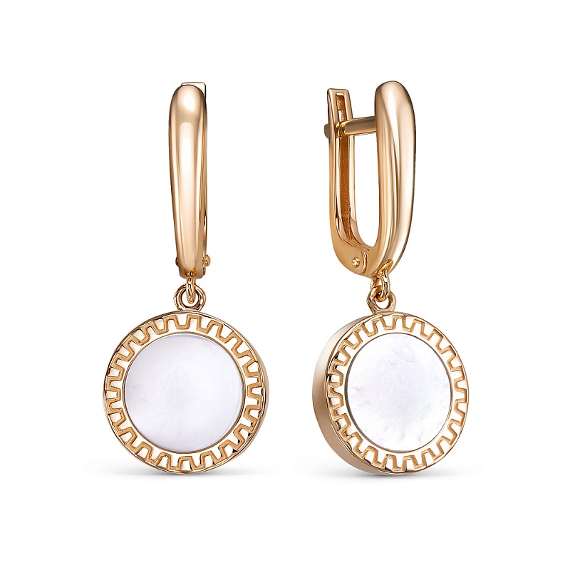 Классические серьги с подвесками, дополненные вставками с белым перламутром, выполнены из красного золота 585 пробы. Украшение привлекательного дизайна с мягким перламутровым блеском смотрится благородно и элегантно, и отлично украсит классический женский образ. Приобретайте великолепное украшение по выгодным ценам в магазинах Мир Золота.