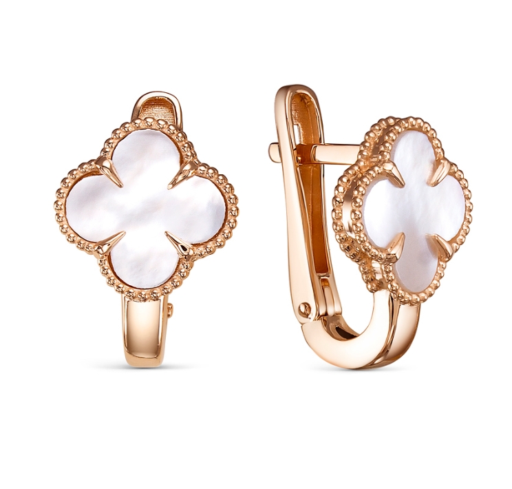 —Серьги «Клевер» из красного золота с перламутром